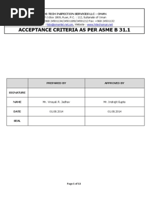 Asme B 31 1 Acceptance Criteria Pdf